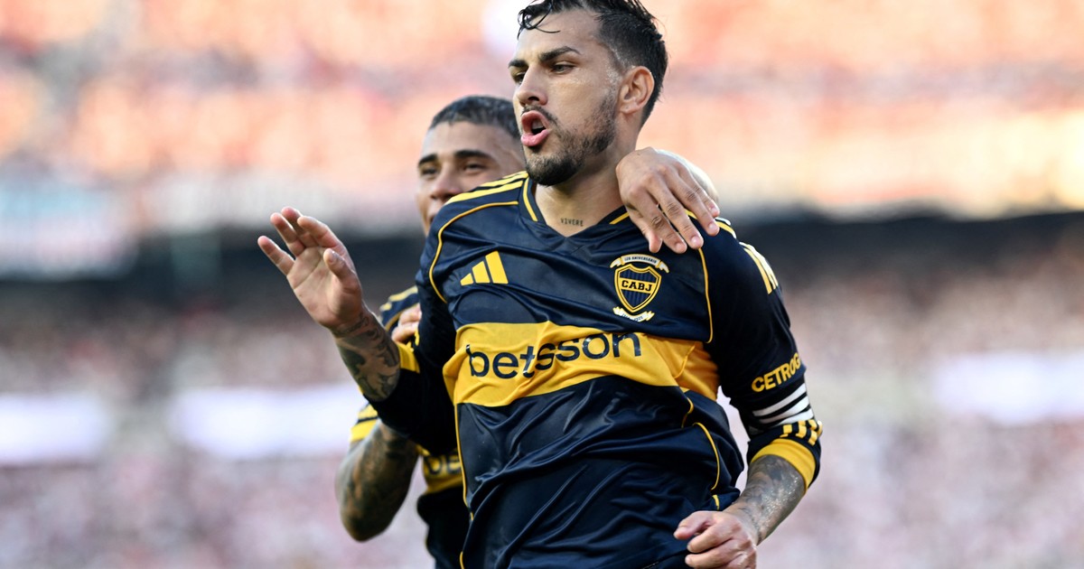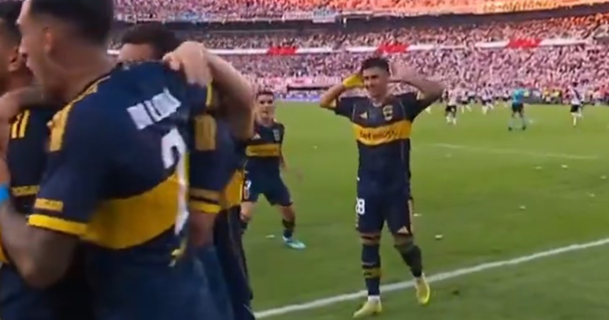 El delantero imitó el gesto de Leandro Paredes tras el gol de penal del volante ante el Millo en el Súper jugado en el Monumental....